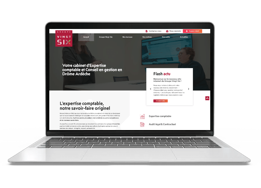 Nous avons réalisé la refonte du site web de Groupe Vingt-Six, cabinet d’Expertise comptable et Conseil en gestion, situé en Drôme Ardèche.